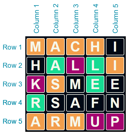 • Orange: This means you have a letter that is in the correct row, but not the correct column